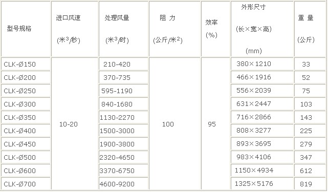 旋風(fēng)除塵器技術(shù)性能:
