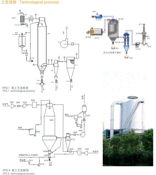 簡(jiǎn)述:壓力式噴霧干燥造粒機(jī)是采用壓力式霧化器借助隔膜泵的壓力將溶液或漿狀的物料霧化成